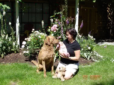 With three champions personally finished, including two from her first-ever litter, Gayle's expertise and passion shine through in every aspect of her work. Outside of her work with dogs, Gayle is a clinical counsellor who enjoys downhill and cross-country skiing, walks at the beach, gardening (especially her beloved roses), knitting, and spending quality time with her family and friends. Gayle's multifaceted background and love for Chesapeakes make her a dedicated and knowledgeable breeder who is deeply committed to the well-being and success of her dogs, both in the ring and at home.