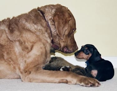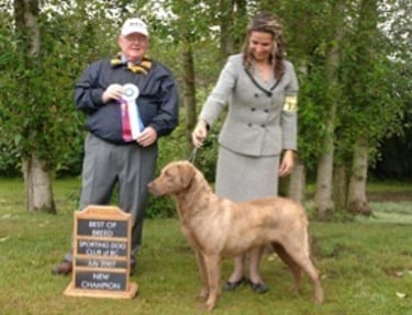 While Gayle breeds dogs with excellent conformation, she firmly believes that temperament is equally important. She values a strong work ethic and drive, combined with a positive and loving attitude. All of her Chesapeakes have been beloved members of her family, known for their friendly interactions with children and other dogs of all sizes. Gayle’s commitment to great temperament is also reflected in her previous career as a high school teacher, where she trained her dog to work in schools. Her dog served as a reassuring presence for students, providing comfort and support, and demonstrating the outstanding temperament that Gayle prioritizes in her breeding program.